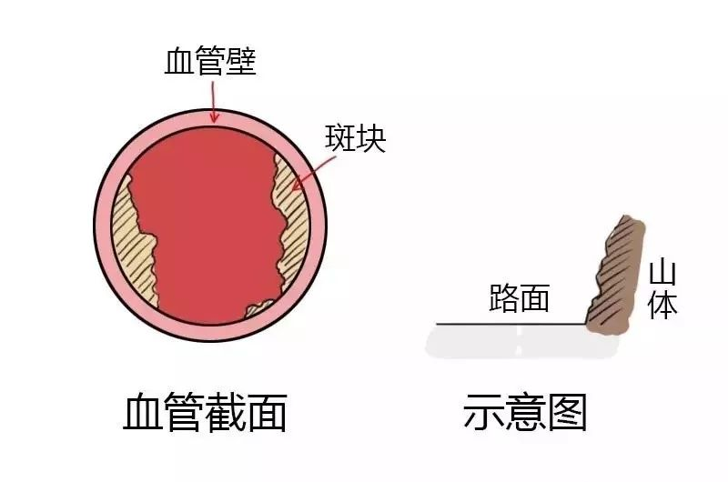 如果把盘山路比作血管,正常情况下车辆(血细胞)可以穿行。但周围有很多临靠的山体,我们把它比作附着有斑块的血管壁。
